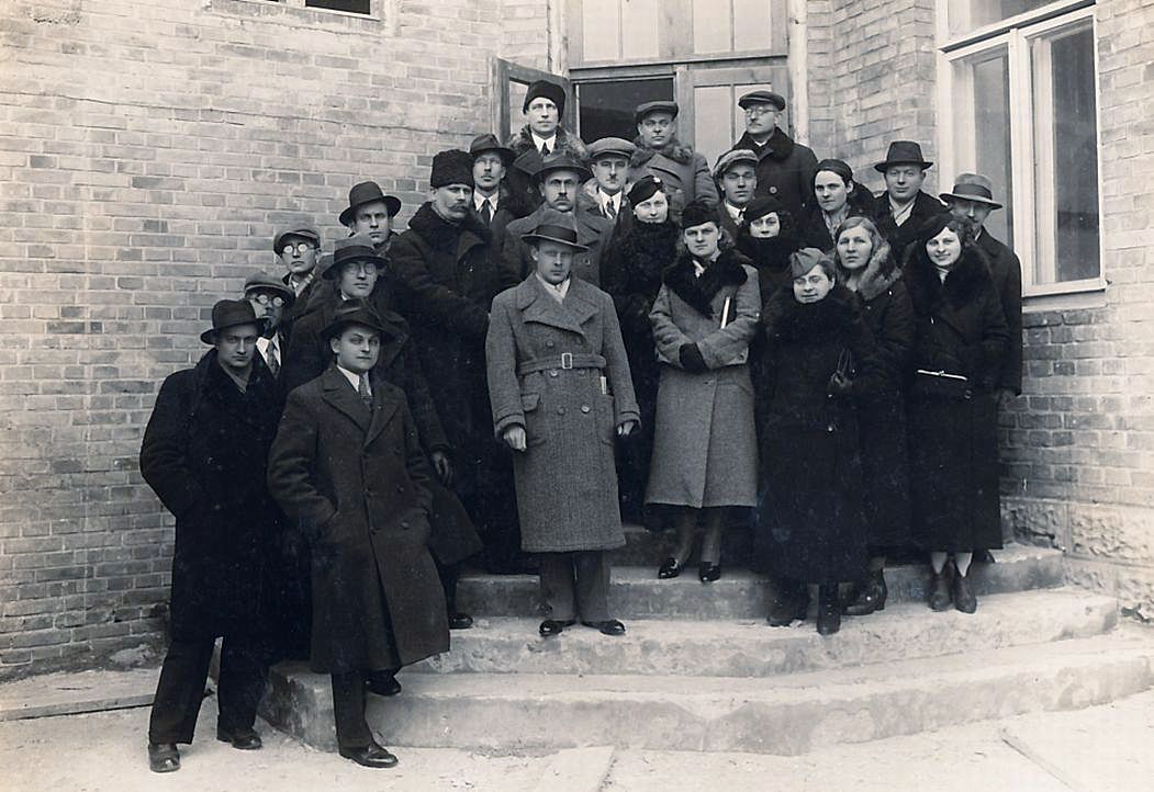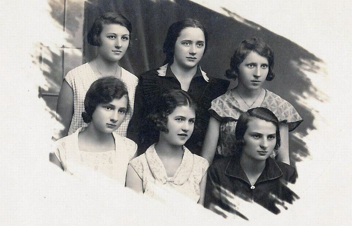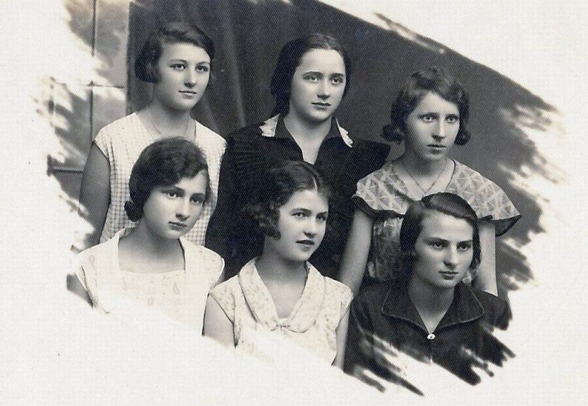 Vlevo má bradu na tabuli Vladislav Kubový ze Špakova a za ním sedí v šatech s bílým límečkem jeho sestra Marie