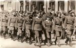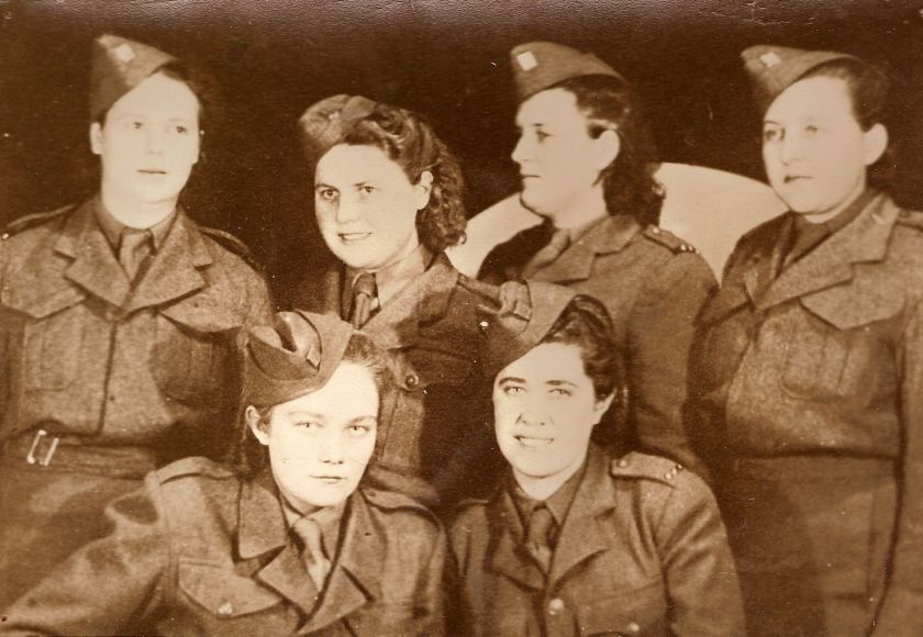 Zdravotní sestra z 3. brigády, únor 1945, Ružomberok. Zleva: Milena Vaňková-Červenková, Valentina Tylková-Dušková, Jiřina Linhartová-Kulichová, Míla Kudrnová-Závodská, Jiřina Svobodová-Vítková, Emilie Somolová-Štefanovská.