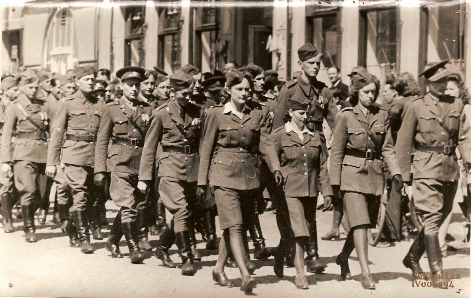 zleva 1.řada: 1. Jiřina Svobodová-Vítková,Volyňská Češka (administr.) 2. ? 3. Milena Somolová-Štefanovská, Volyňská Češka (zdravotnice) 4. por. Ant. Boček zleva 2.řada: 1. Ppor. Josef Pajer, 2. ?, 3. des. Vladimír Kopřiva