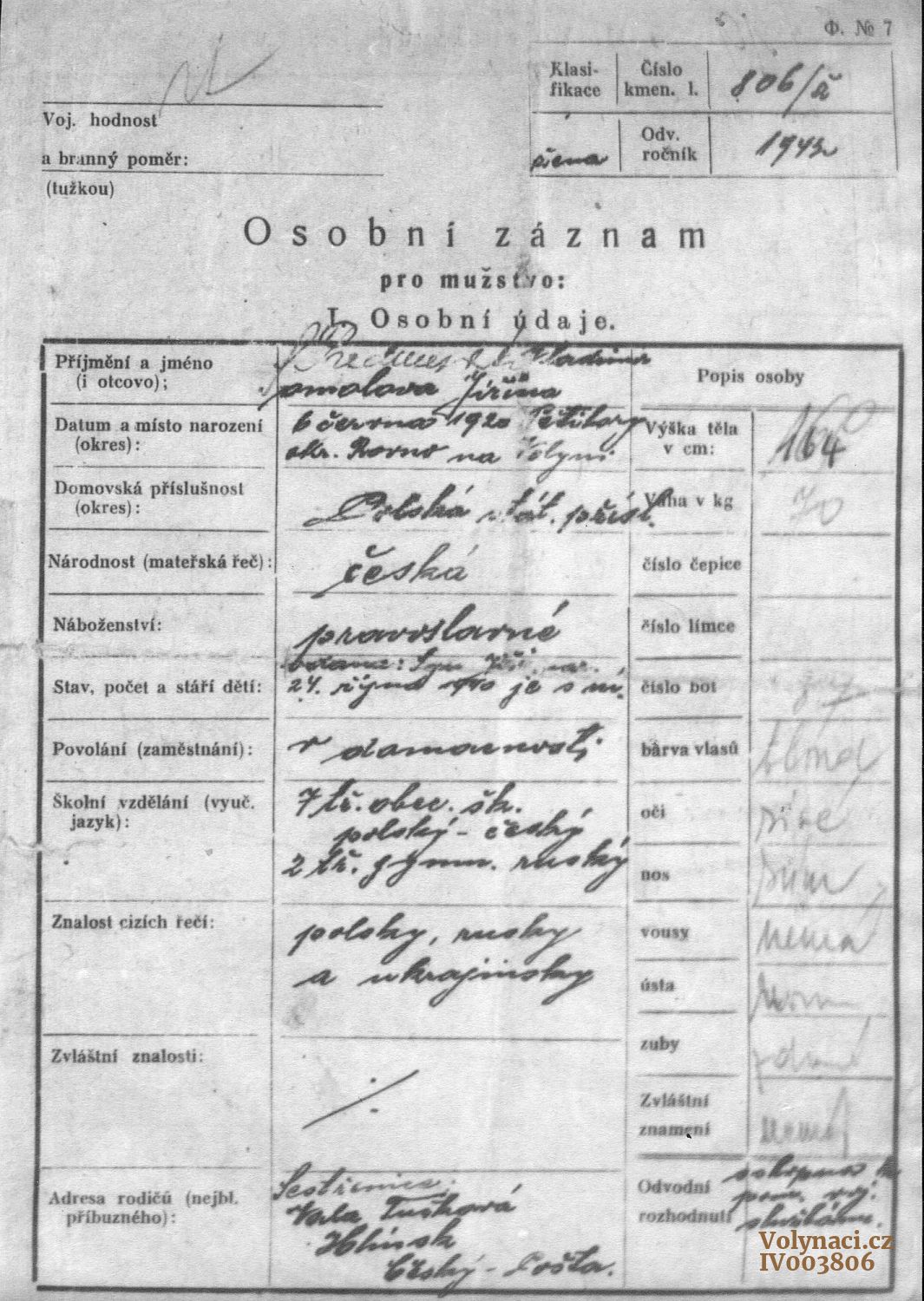 | Místo repatriace | Litoměřice, Československo (repatriace) | |