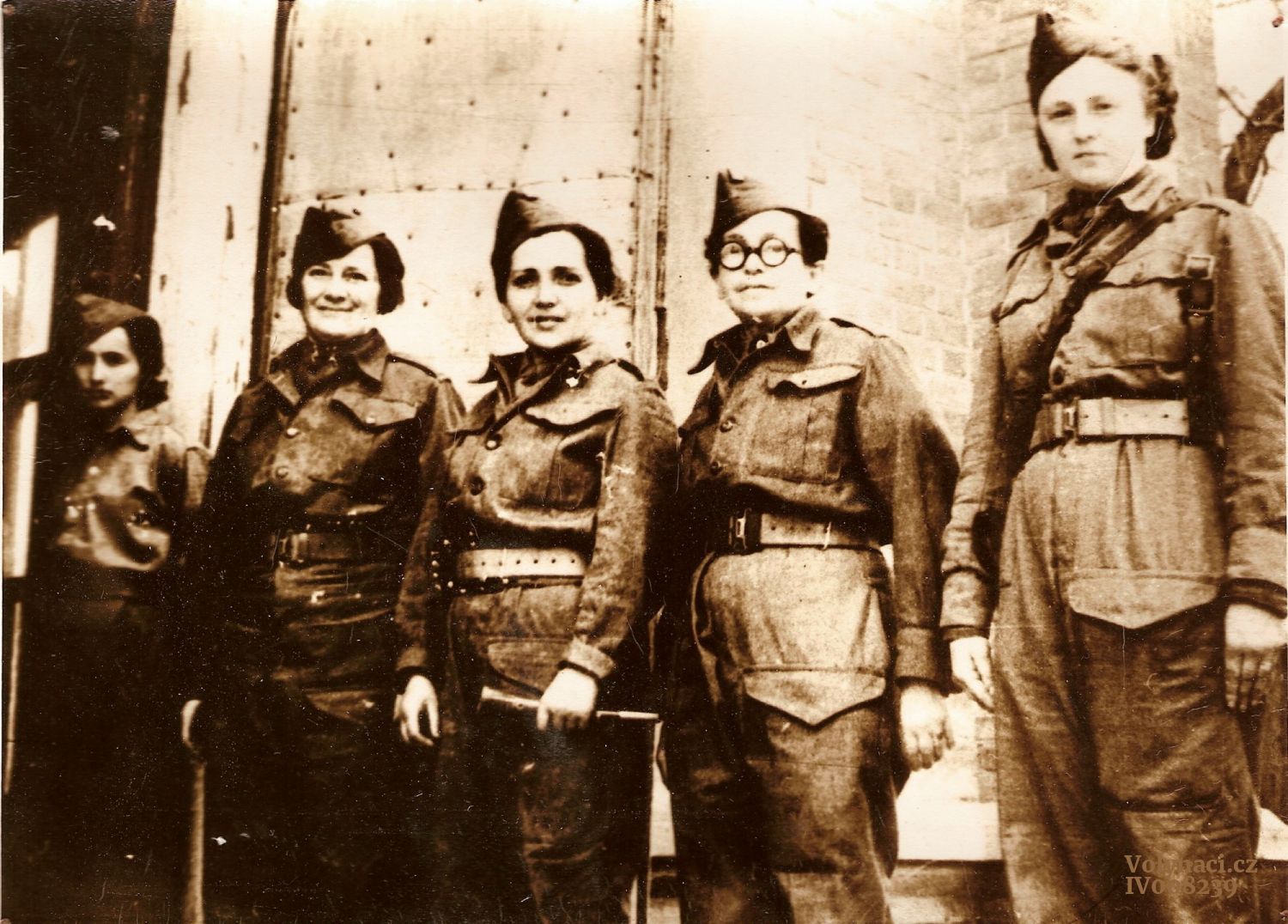 Alla Novická-Hrybová, Josefa Valentová, Tereza Běliková-Čerepaková, ?, Somolová-Predmerská - Buzuluk 1943.