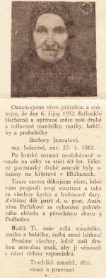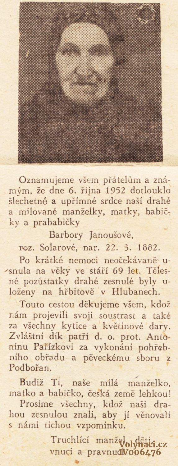 | Úmrtí | † 6. 10. 1952, hřbitov Hlubany |