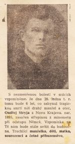 Nekrolog Ondřeje Stryji z Novokrajeva na Volyni