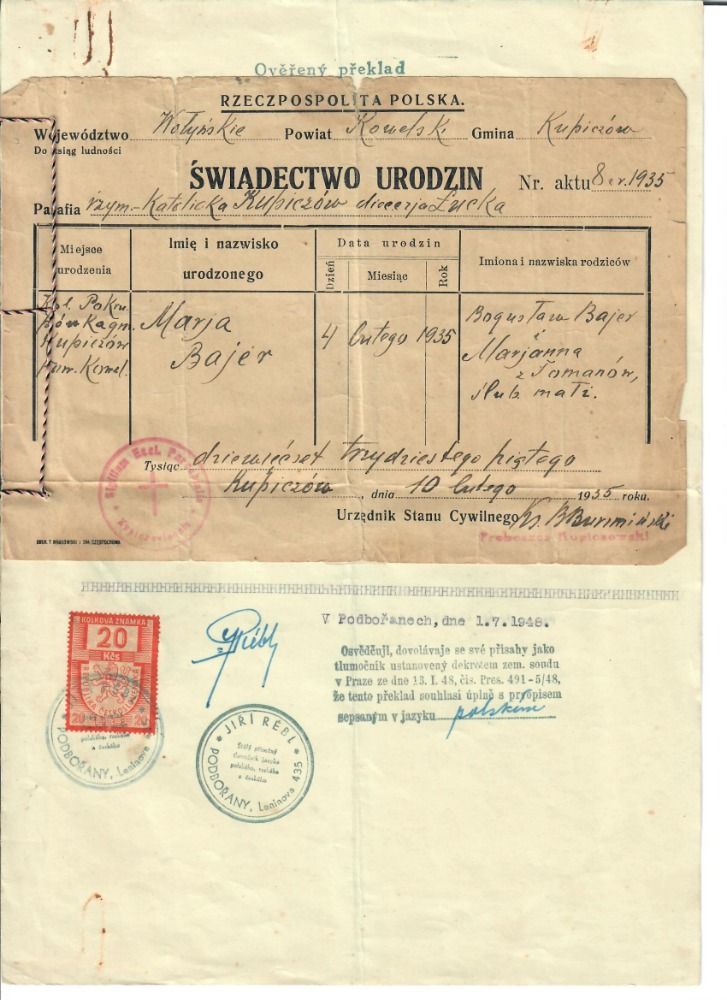 Rodokmen Bajer a Toman z Kupičova sepsaný v letech 1945-1949