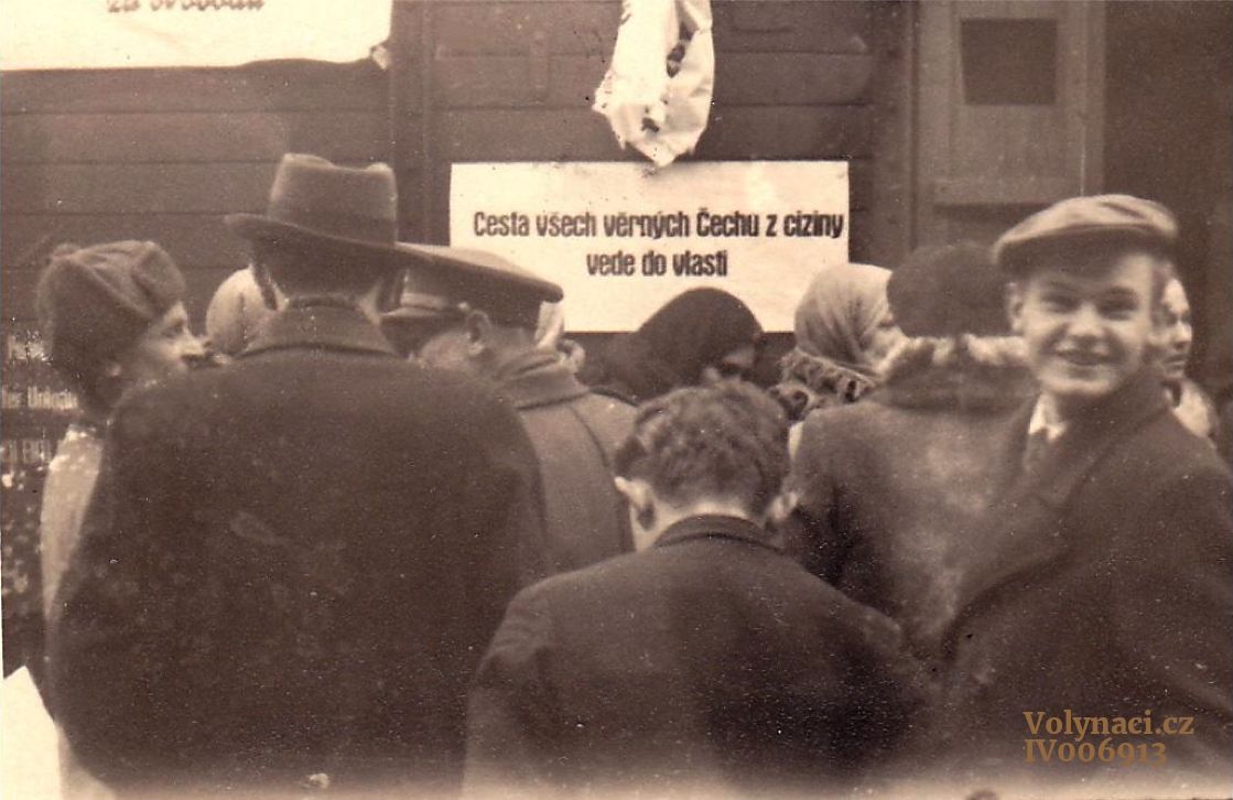 Návrat manželky a synů Vladimíra Bláhy do vlasti, rok 1947. Vpravo syn Vladimír Bláha (*1928), vedle otočený zády druhý syn Stanislav (*1936).