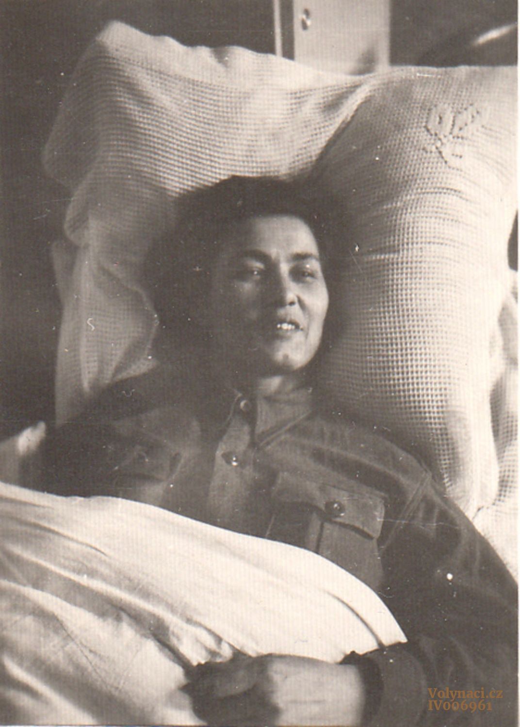 Růžena Biněvská při převozu z nemocnice Užgorodu na zastávce v DD na Slovensku v Lučivně