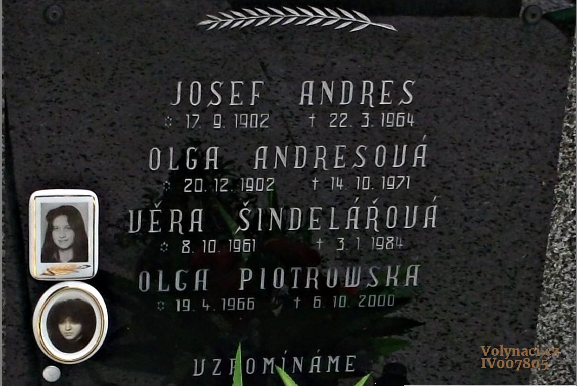 Olga Andresová rozená Entová, byla i s dětmi, ve shromažďovacím středisku v Třemošné, poslána k neteři do Zálužic.