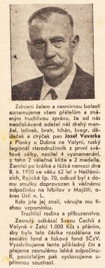 Nekrolog Josefa Veverky z Plosky na Volyni.