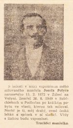 | Úmrtí | † 28. 8. 1949, Soběchleby u Podbořan |