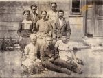 Svatba Josefa Vostrého a Marie Levické - obřad proběhl v katolickém kostele v Lenešicích a oslava u Levických v Břvanech, vedle nevěsty stojí její bratr Josef