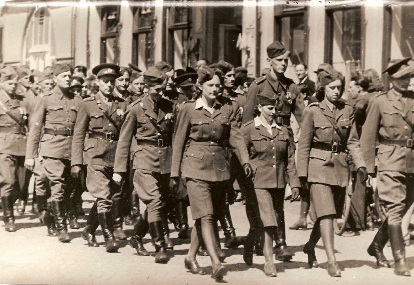 zleva 1.řada: 1. Jiřina Svobodová-Vítková,Volyňská Češka (administr.) 2. ? 3. Milena Somolová-Štefanovská, Volyňská Češka (zdravotnice) 4. por. Ant. Boček zleva 2.řada: 1. Ppor. Josef Pajer, 2. ?, 3. des. Vladimír Kopřiva