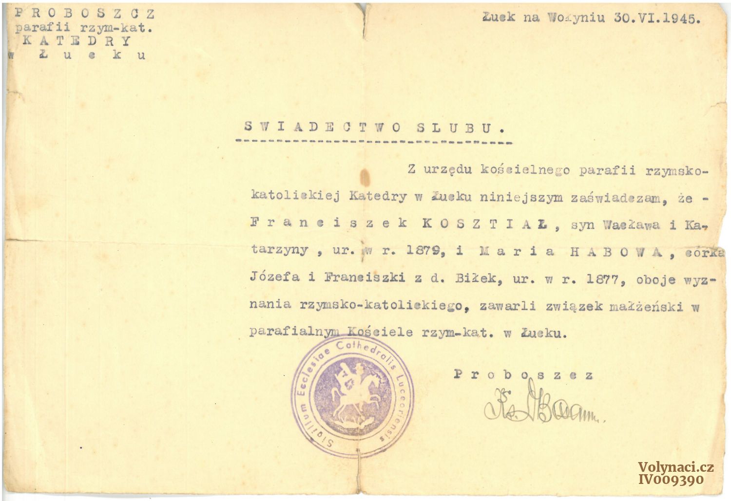Manželka: Hábová Marie, Josef, Košťálová