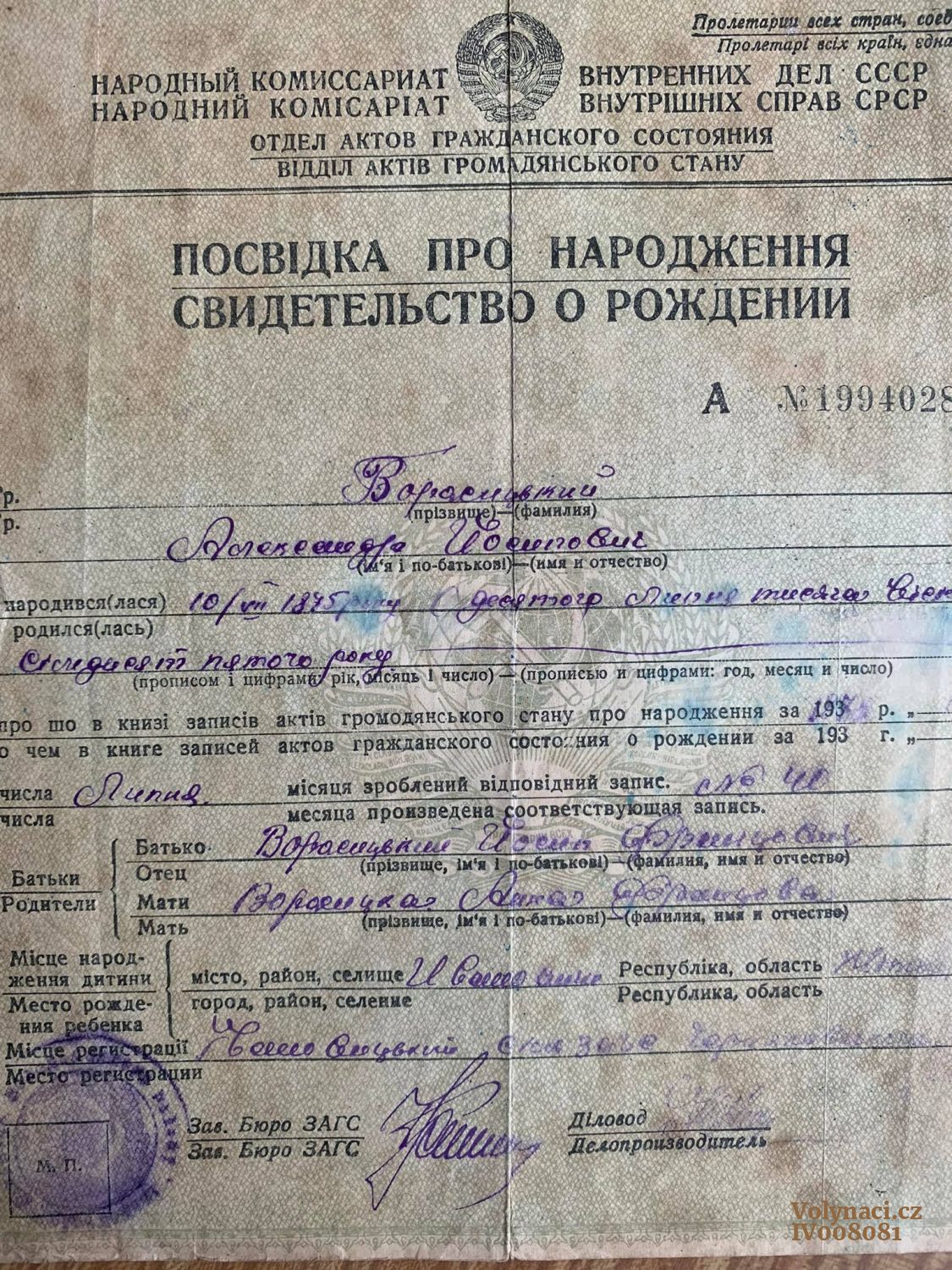 Křestní list k vystěhování se do Ruska byl vyhotoven 20.03.1885.