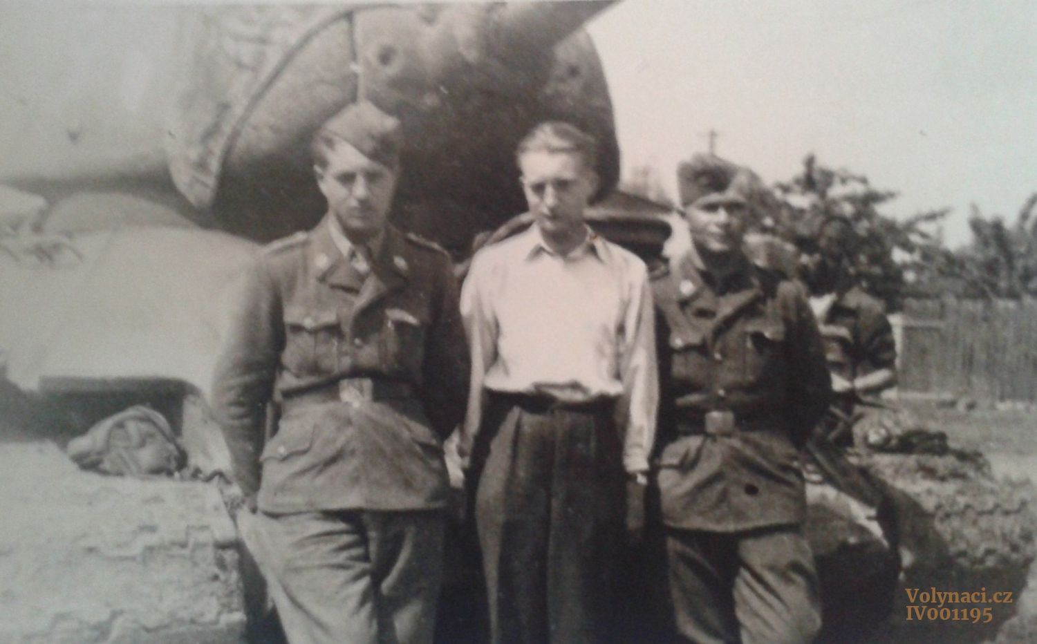 zleva v uniformách: přibuzní: pan Václav Kuchynka, Karel Šerák a Bedřich Opočenský