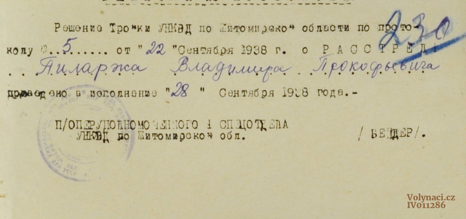 | Úmrtí | † 28. 9. 1938, Žitomir, popraven |