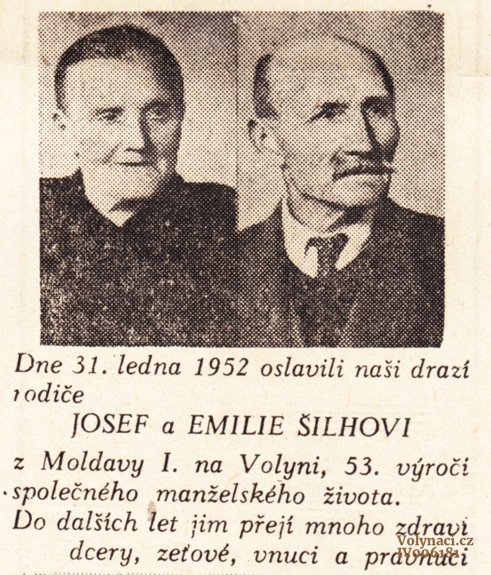 53.výročí svatby oslavili Josef a Emilie Šilhovi v roce 1952.