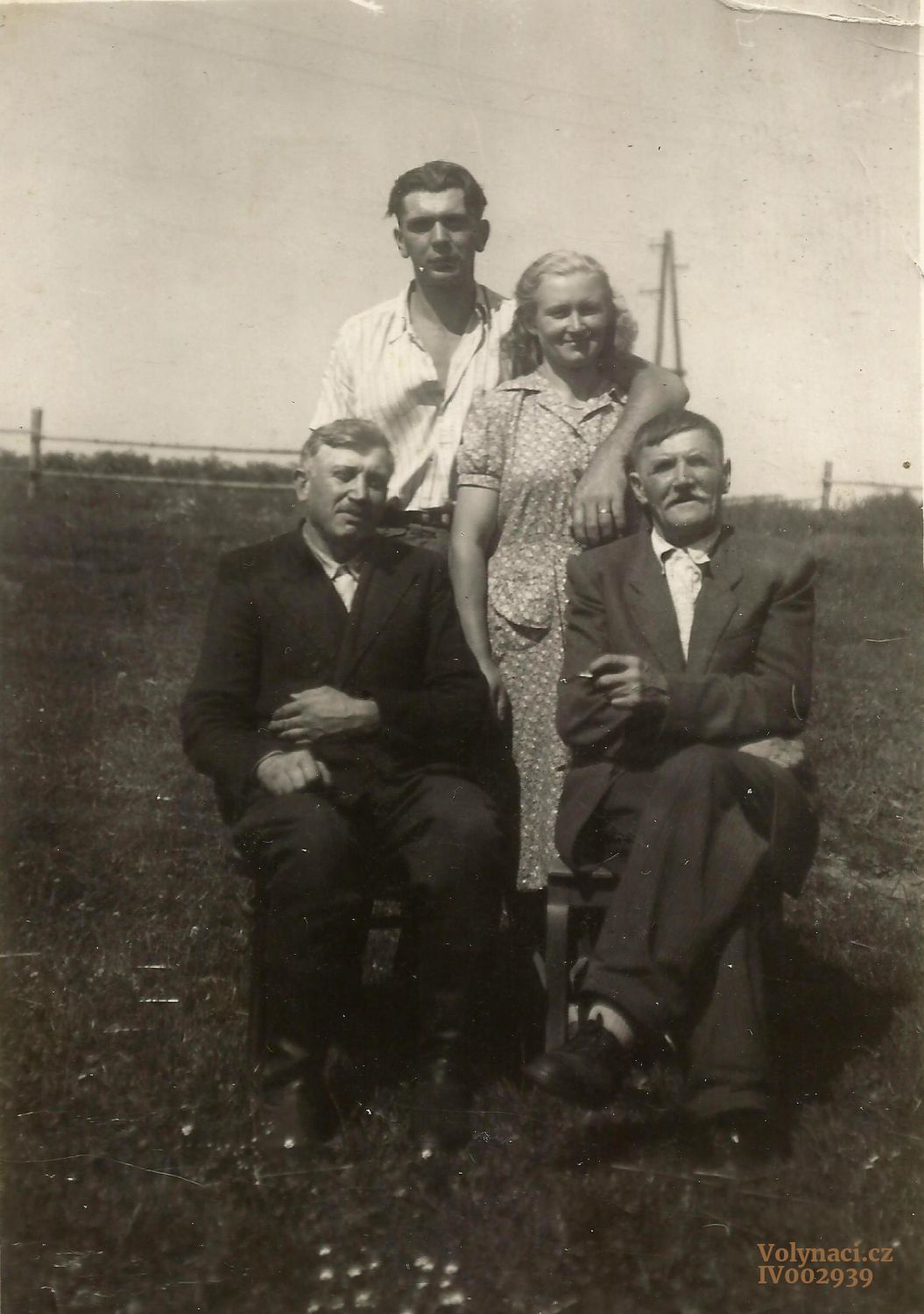 Nahoře manželé Josef a Ludmila Uhlířovi s otcem pamětnice Antonínem Stárkem a Musilem Hlinákem