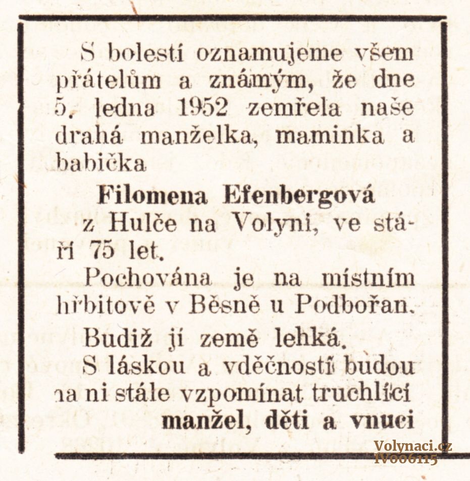 Nekrolog pí. Filomeny Efenbergové z Hulče na Volyni.