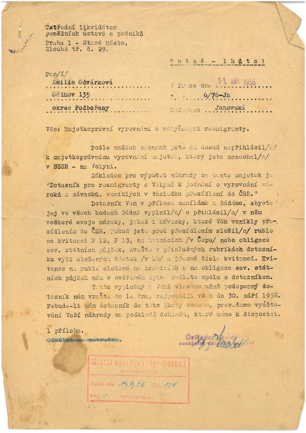 Žádost o reemigraci rodinných příšlušníků ze SSSR
