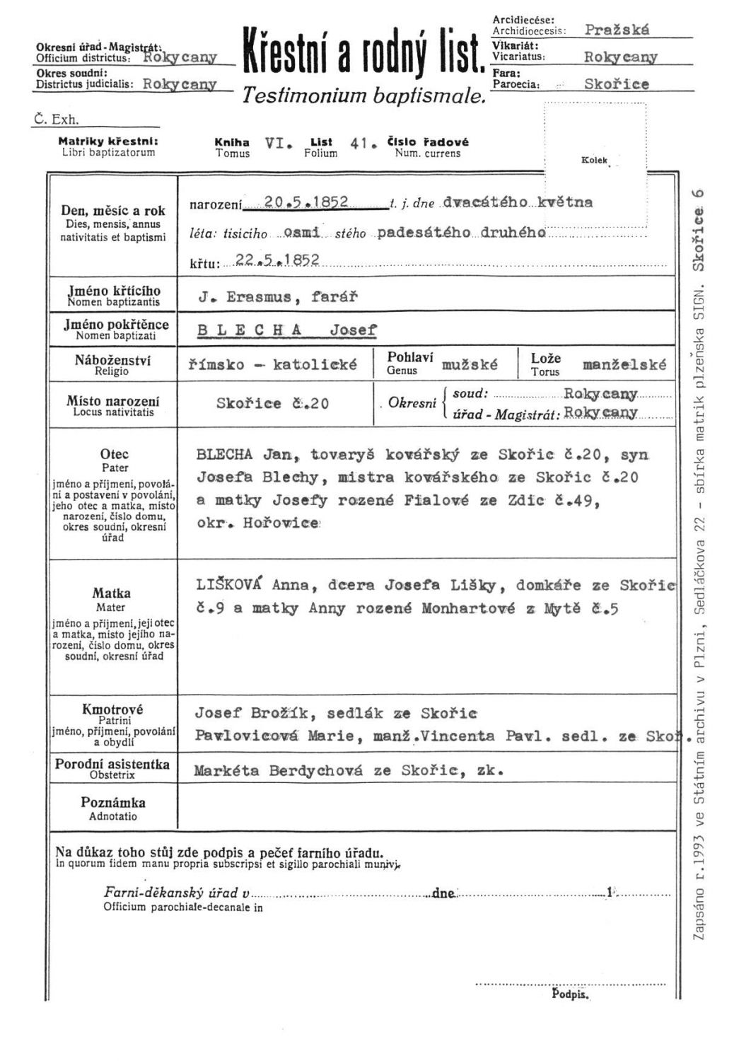 Zdroj: Archiv rodiny Jiřího Blechy |