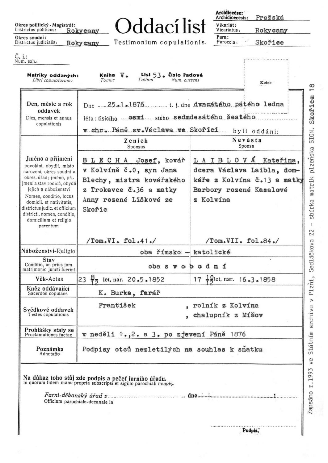Manželka: Laiblová Kateřina, Václav, Blechová