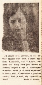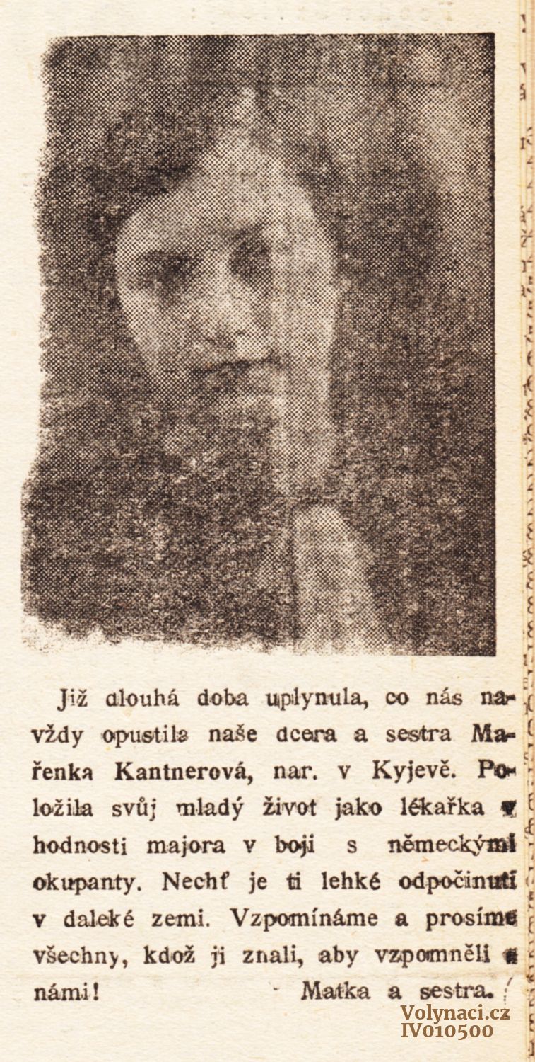 Nekrolog Marie Kantnerové z Kyjeva na Volyni.