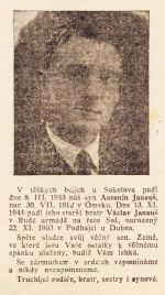 Padl na řece Sož jako voják Rudé armády. Jeho mladší bratr Antonín také padl ve válce.