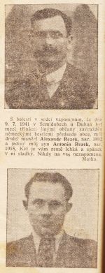 Nekrolog otce a syna Rezkových ze Semidub, zabitých Němci na Volyni v roce 1941.