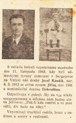 Nekrolog Josefa Kendíka a jeho dvou dětí zabitých němci.