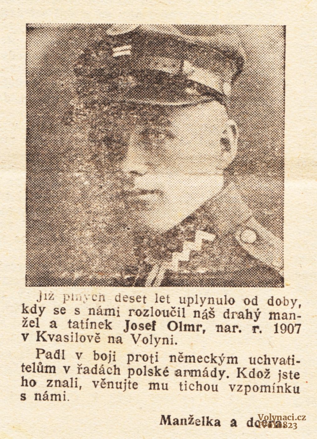 Nekrolog Josefa Olmra z Kvasilova na Volyni