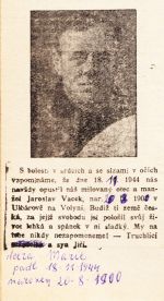 Nekrolog Jaroslava Vacka z Ulbárova na Volyni.