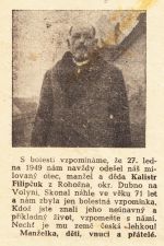 Nekrolog Kalistra Filipčuka z Rohozna na Volyni.