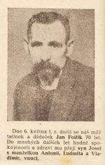 Dle Věrné stráže se 6.5.1950 pan Jan Fojtík dožil věku 70 let.