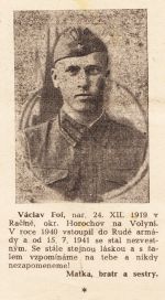 Nekrolog Václava Fofa z Račína na Volyni