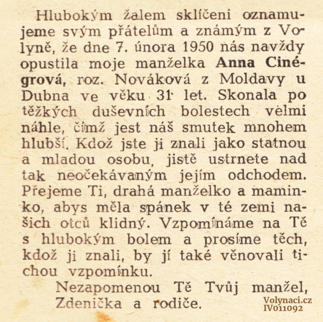 po reemigraci se s manželem usadili v Nové Dědině č.p.5, okr.Šternberk (dnes okres Kroměříž)