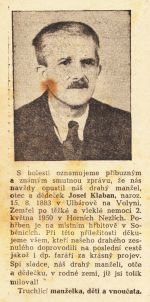 Nekrolog Josefa Klabana z Ulbárova na Volyni.