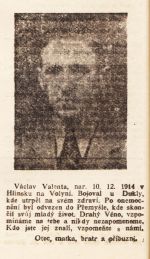 Nekrolog Václava Valenty z Hlinska na Volyni