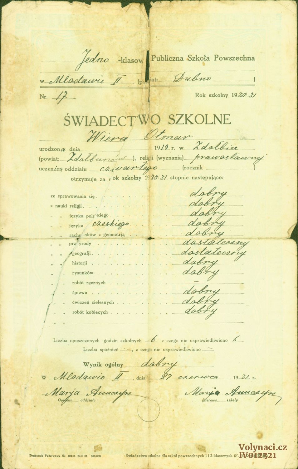 parte Věry Kvapilové z obce Zdolbice na Volyni.