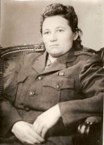 Anna Valoušková-Hajná ze Lipin na Volyni, krejčovská dílna 3. brigády.