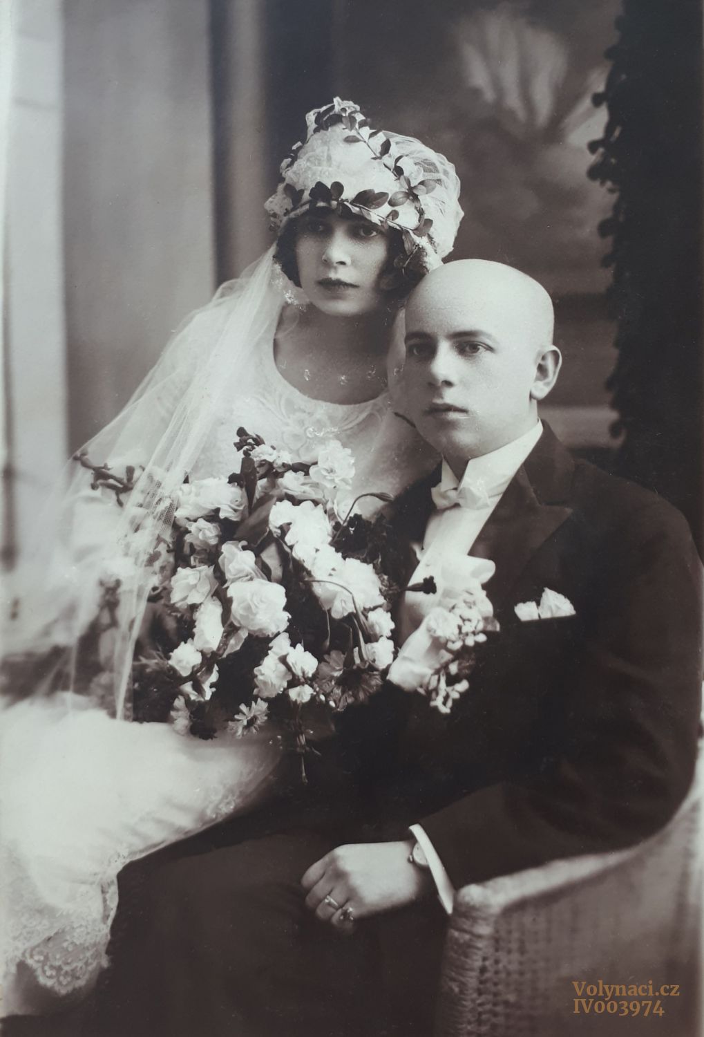 Svatební fotografie Josefa Martinovského a Marie Reové ze dne 11.8.1926 v Knerutech, fotografie atelier v Rovně