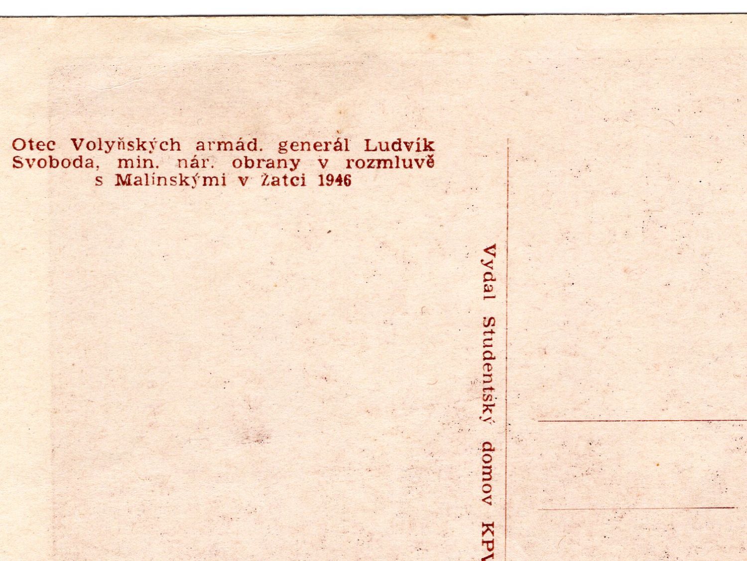 soubor obrázků z historie Volyňských Čechů vydaný KPVČ v Žatci Generál L. Svoboda při rozhovoru s Malínskými Žatec 1946