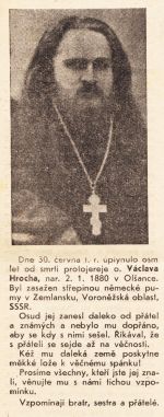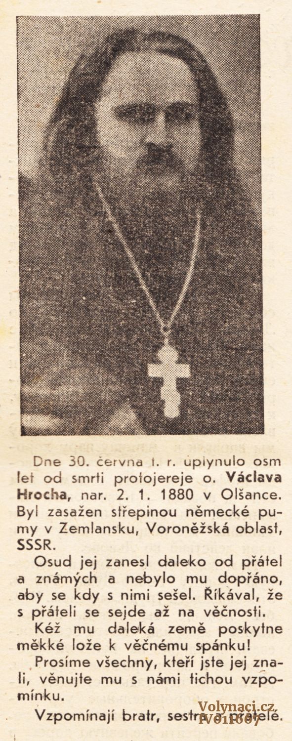 Nekrolog Václava Hrocha z Olšanky na Volyni.