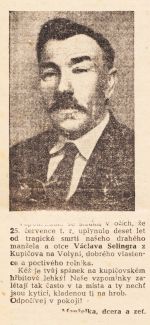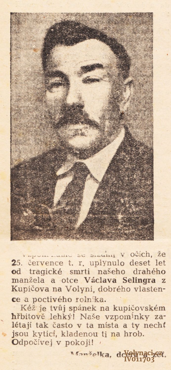 Nekrolog Václava Selingera z Kupičova na Volyni.
