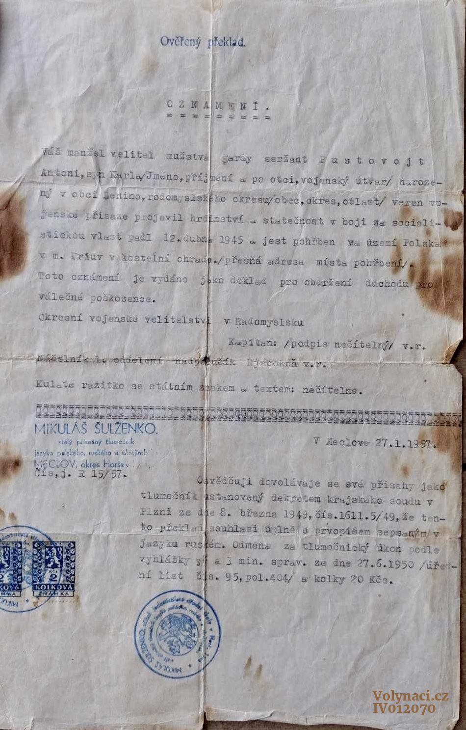 | Úmrtí | † 12. 4. 1945, hřbitov Pszów, hrob č. 8 |