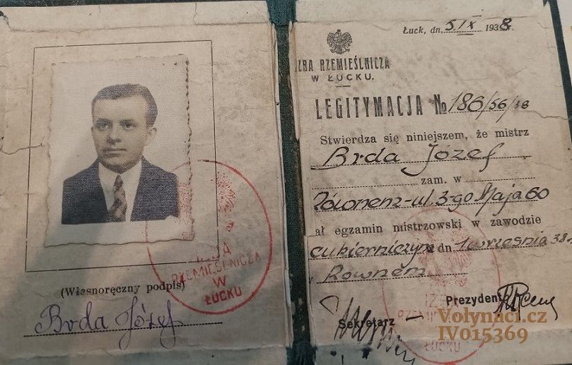 Pan Josef Brda se narodil 18. října 1909 na Volyni v obci Huleč Česká jako třetí dítě rodičům Augustýně Brdové rozené Kvasničkové a Josefu Brdovi. V šesti letech mu zemřela maminka na tyfus a otec Josef se podruhé oženil s Marií Čižikovou. Útrapy první světové války prožila rodina v Hulči České. Josef navštěvoval v rodné obci českou školu. Po ukončení obecné školy pracoval jako obchodní příručí a dokončil si všeobecné základní vzdělání, poté nastoupil do učení a vyučil se pekařem – cukrářem. Po vyučení odchází do Rovna, kde pracuje dále jako cukrář a zároveň navštěvuje vyšší odbornou školu. Po absolutoriu v roce 1938 získává mistrovský titul. Je přijat do cechu pekařů a cukrářů s právem vytvořit si vlastní firmu. V roce 1931 byl odveden do armády, ale z vojenské služby se vykoupil a tudíž nemusel narukovat do polské armády. Roku 1935 se oženil s rodačkou z Hulče Annou Touškovou. Mladí manželé žili na usedlosti v Hulči a v roce 1939 se jim narodila dcera Emilie. V září 1939 Volyň zabrali Sověti. V té době mu bylo nabídnuto místo ve vedení zestátněné pekárny a cukrárny, která zásobovala pečivem většinu oblasti kolem krajského města Rovna. Bylo mu naznačeno, že pokud odmítne, může skončit v gulagu. Přesto Josef nabízené místo odmítl. Jak později vyprávěl, byla to snad sama prozřetelnost, protože v červenci 1941 po příchodu Němců bylo celé vedení pekárny zlikvidováno. Na období let 1941 až 1944 vzpomínal nerad. Vždy říkal, ve městech byl hlad a nedostatek potravin, ale bezpečno. Na vesnici bylo všechno, ale nebezpečno. Řádily zde bandy nacionalistů, které nikoho nešetřily, hlavně Židy a Poláky. Po osvobození Volyně sovětskou armádou byl Josef v březnu 1944 odveden do 1.čs armádního sboru v SSSR a po absolvování základního výcviku zařazen do 2. tankového praporu ve funkci průzkumník a velitel zásobovač. Účastnil se bojů u Krosna, Dukly, Liptovského Mikuláše, Popradu, Ostravy a Opavy, kde válku ukončil. V květnu 1945 byl přesunut do Prahy a poté na posádku do Žatce. Válku završil v hodnosti rotného a za hrdinství v boji obdržel osm vyznamenání: sovětských, polských i československých. Samozřejmě, že se chtěl vrátit domů k rodině na Volyň. V červnu 1945 přišel za svým velitelem štábním kapitánem Josefem Buršíkem s žádostí o uvolnění z armády a tenkrát si ho jeho velitel Buršík vzal stranou a vysvětlil mu, proč se okamžitě nemá vracet domů, že rodinám vojáků na základě dohody vlád Československa a Sovětského svazu bude umožněno přesídlit do Československa. Později Josef vzpomínal, jak dobře udělal, že ho poslechl. Většina kluků, co se ihned vraceli domů, skončila v Rudé armádě na východní frontě a byla vtažena do války s Japonskem a postupně se vraceli domů na Volyň až v průběhu roku 1946 po strastiplné cestě podél transsibiřské magistrály. Josef Brda byl demobilizován na jaře 1946 a vzhledem k tomu, že se na Podbořansku usadilo mnoho jeho kamarádů a příbuzných, rozhodl se pro tuto oblast, konkrétně pro Vrbici v tehdejším okrese Podbořany. Právě Vrbice, kam za ním na jaře 1947 jedním z posledních transportů dorazila manželka Anna s dcerou Emilií, se stala na dalších čtyřicet pět let jeho novým domovem. Na počátku padesátých let vstupuje do JZD, kde pracuje až do svého odchodu do důchodu v roce 1968. V roce 1952 do rodiny přibyl ještě syn Miroslav. Pan Josef Brda byl v širokém okolí proslaven svým cukrářským uměním. Vedl si evidenci sňatků, na kterých pekl svatební cukroví a jezdíval předvádět své cukrářské řemeslo. Bylo tomu tak až do odchodu na zasloužený odpočinek, kdy se v roce 1991 přestěhoval s manželkou Annou k dceři Emílii na Orlík nad Vltavou. Zde v březnu 1994, v klidu a pohodě v kruhu svých nejbližších dožil svůj bohatý život a odešel ve věku osmdesáti pěti let. Jeho manželka Anna zemřela v roce 2008 a oba jsou pochováni na hřbitově v Orlíku nad Vltavou.