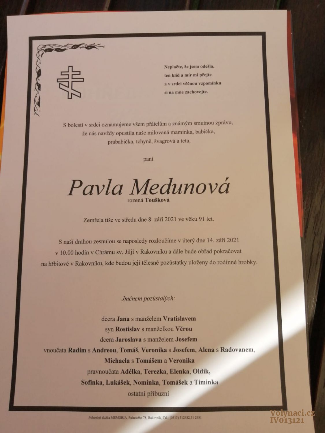 Toušková Pavla, Miloslav/Miroslav, Medunová
