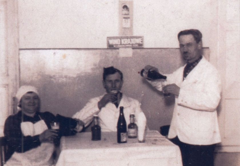 Josef a Marie Kyselovi se strýcem Alexandrem Zárybnickým ve své restauraci v Lucku, 30. léta