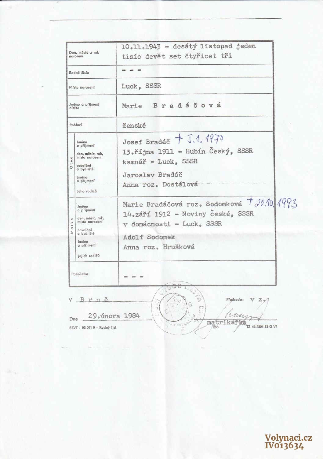 Příjmení (rodné / za svobodna) Jméno (křestní), Jméno (po otci), Příjmení (provdána za)