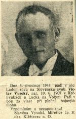 padl již 5.12.1944 v obci Ladomirova. Jako jeho datum narození uvádí o měsíc dříve než ve voj.záznamech - 10.6.1907 !