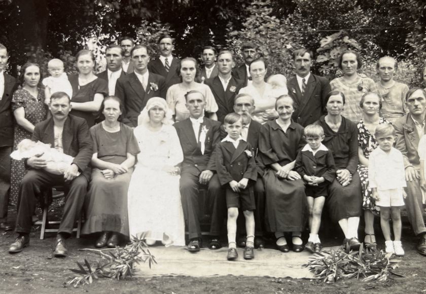 Liškovi svými dětmi Jaroslavem, Františkem, Josefem, Antonínem, Oldřichem a Annou, 1958